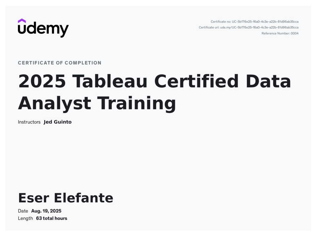 I’m Eser Elefante, a dedicated Data Analyst, Data Entry Specialist, and Web Designer who blends analytical precision with creative problem-solving to deliver results that matter.